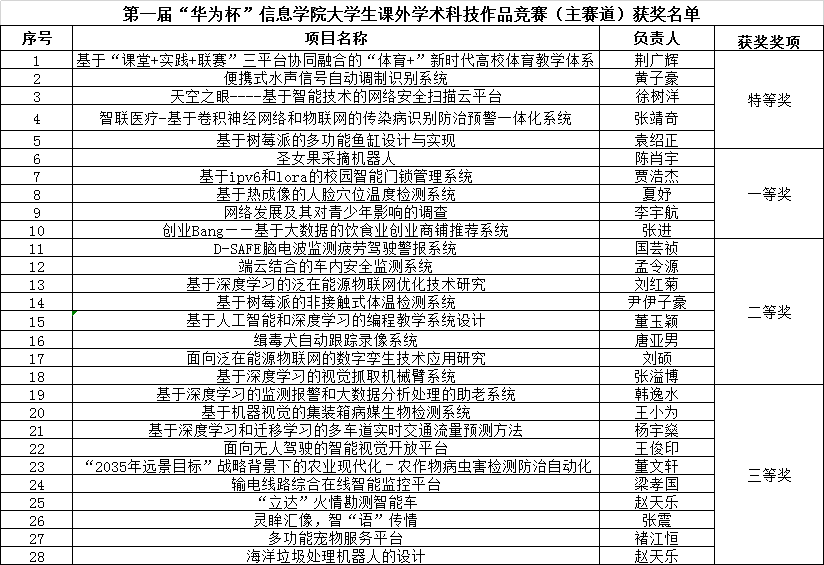 第一届“华为杯”欧博abg官网大学生课外学术科技作品竞赛经学院初赛决赛于2021年3月9日圆满结束,主赛道共评出特等奖5项,一等奖5项,二等奖8项,三等奖10项;红色专项共评出特等奖1项,一等奖2项,二等奖3项,三等奖4项,现将获奖名单公示,详见附件。